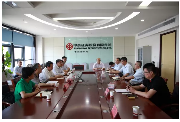 6月26日下午,第三工作组在中泰证券泰安分公司会议室召开中介机构座谈会。中泰证券泰安分公司副总经理赵杰、东岳大街营业部总经理崔荣伟、机构业务部负责人郭千里,泰安商会秘书长徐涛,万宣资管总经理张明亮,鸿硕投资总经理郭振亭等参加座谈会,对齐鲁股权未来如何提高服务质量建言献策。